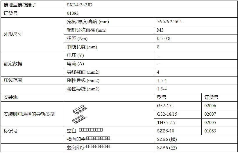 SKJ-4/2×2JD 接地型接線端子-導軌式接線端子