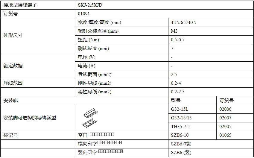 SKJ-2.5XJD 接地型接線端子
