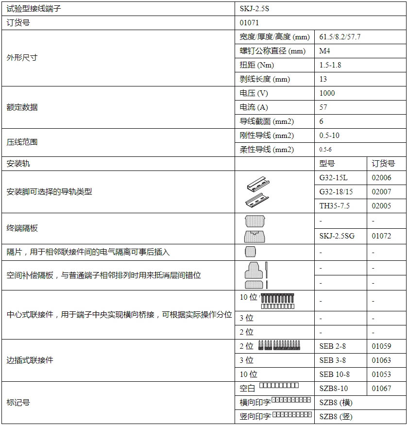 SKJ-2.5S 試驗型接線端子-導軌式接線端子