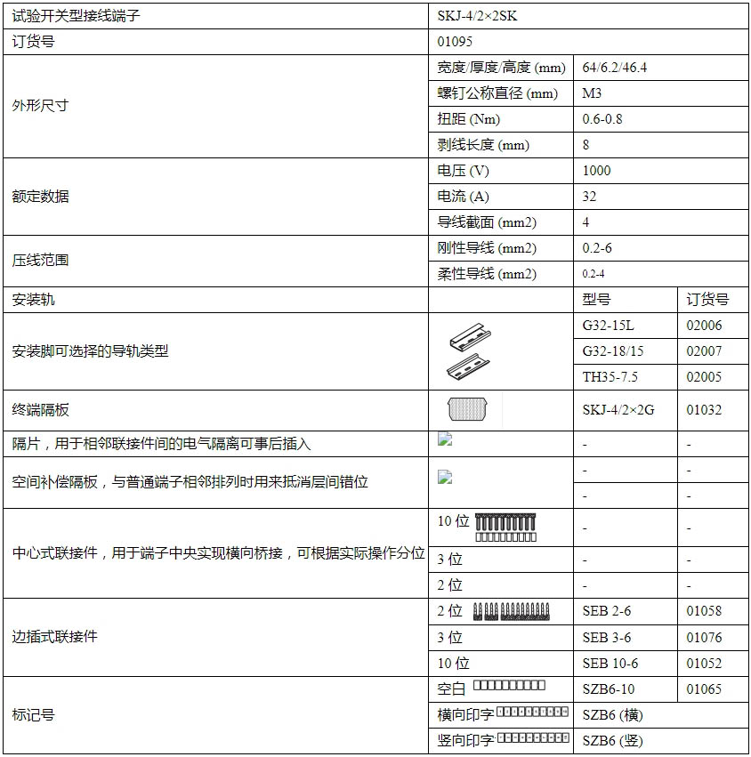 SKJ-4/2×2SK 試驗開關型接線端子-導軌式接線端子