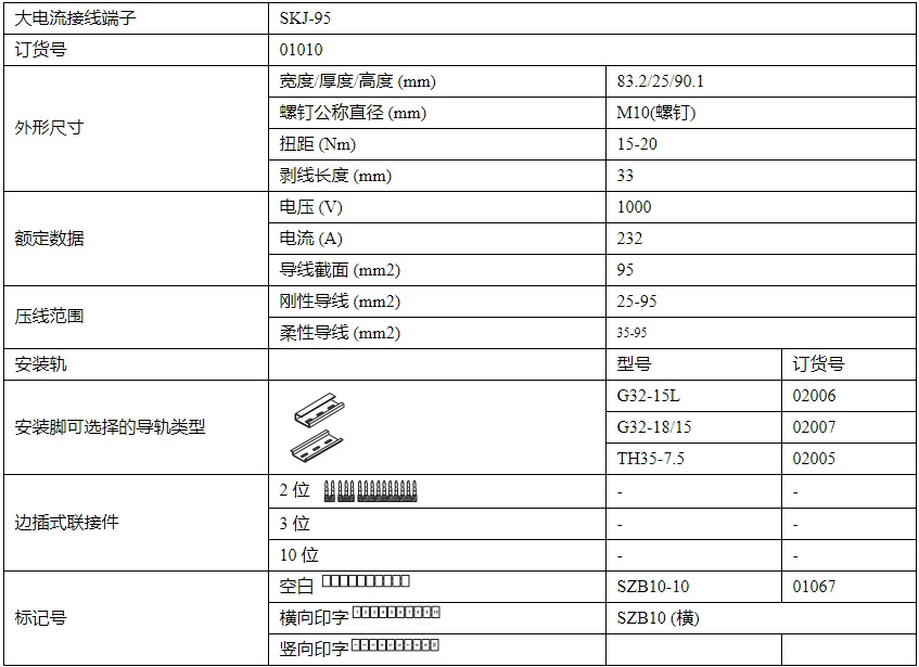 > 通用型大電流端子可接入導(dǎo)線的截面范圍為16-240平方毫米。我們?cè)诙俗訕?gòu)造上采取了有效措施以確保可靠的接線。這些措施包括:
