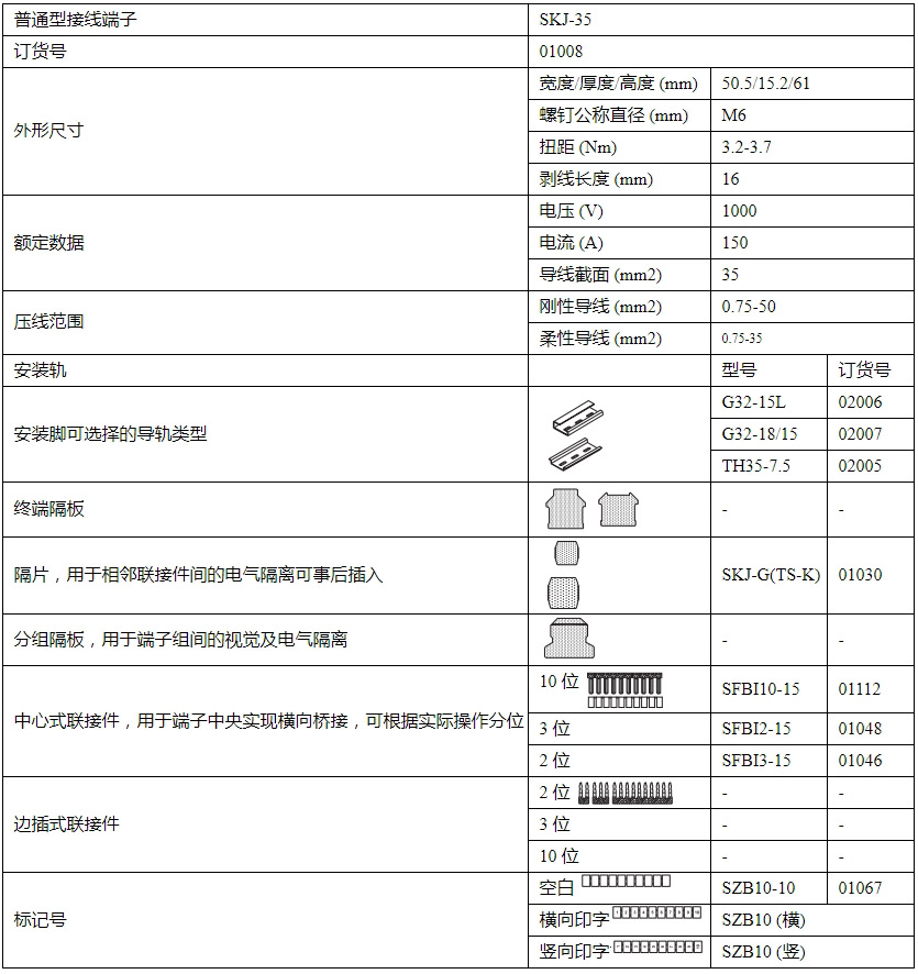 通用型接線端子SKJ螺釘壓接式系列產(chǎn)品具有下列對于實際應用很有意義的典型特征: