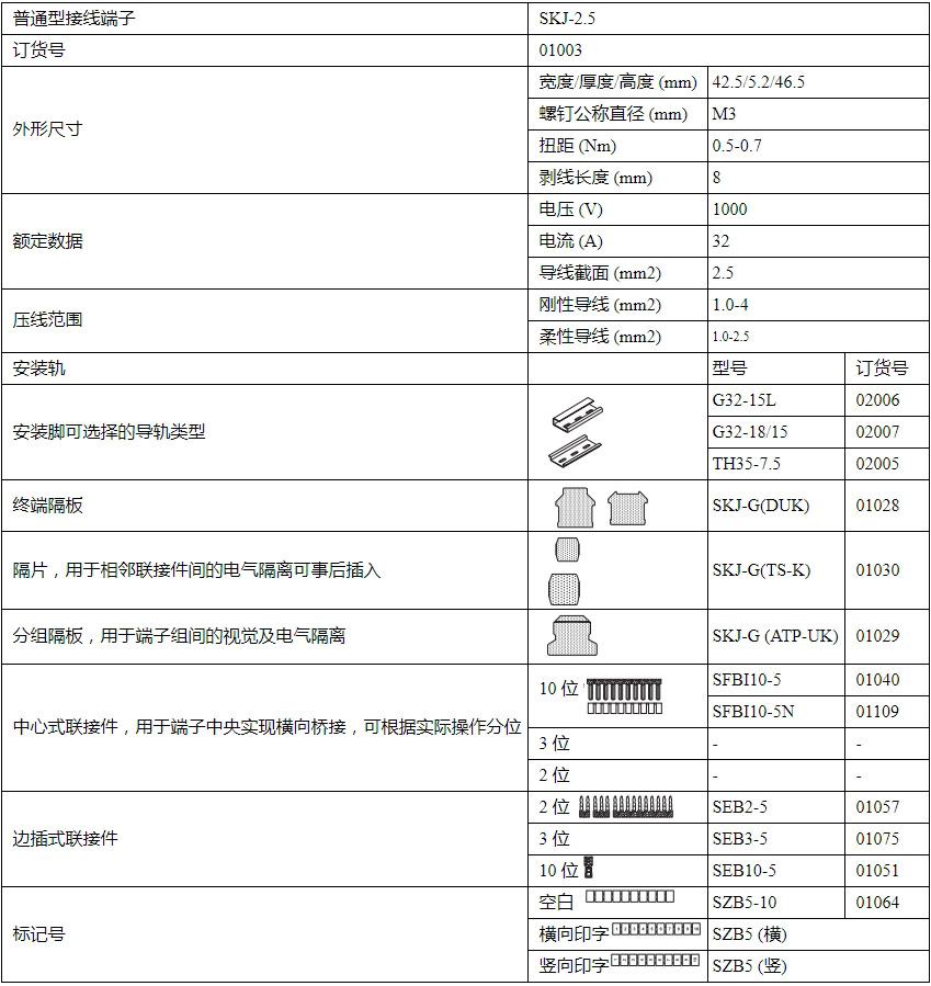 通用型接線端子SKJ螺釘壓接式系列產品具有下列對于實際應用很有意義的典型特征: