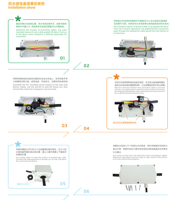 5、使用壽命:防水盒的使用壽命常規的材料跟據使用環境不同一般會在5年左右,如果材料有添加阻燃劑和防老化劑[抗氧化劑壽命可達到10年以上。熱變形溫度:-40~85度。