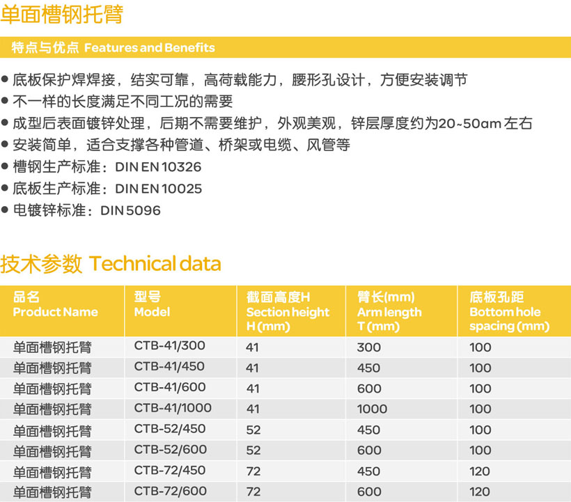 單面槽鋼托臂