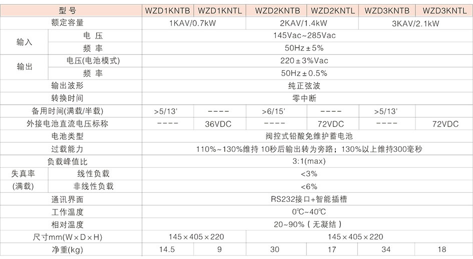1kVA-3kVAWZD-UPS不間斷電源主要技術參數