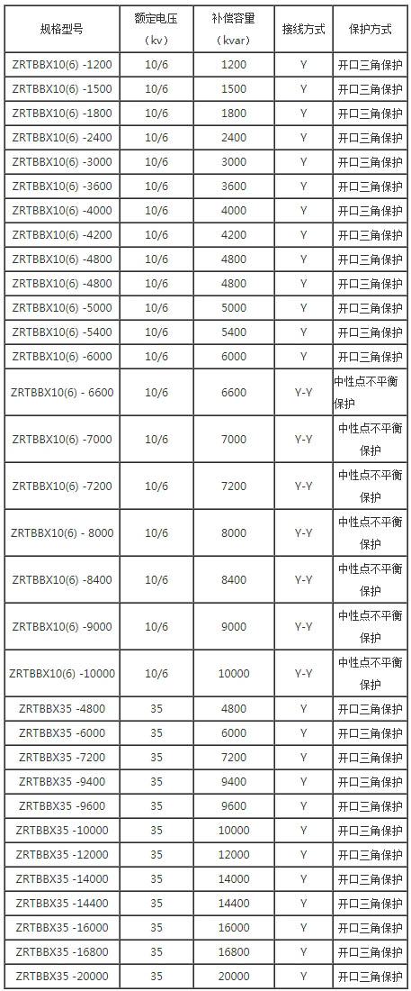 裝置主要用于6kv、10kv、24kv、35kv三相電力系統,用以調整平衡網絡電壓提高功率因數降低損耗提高供電質量。