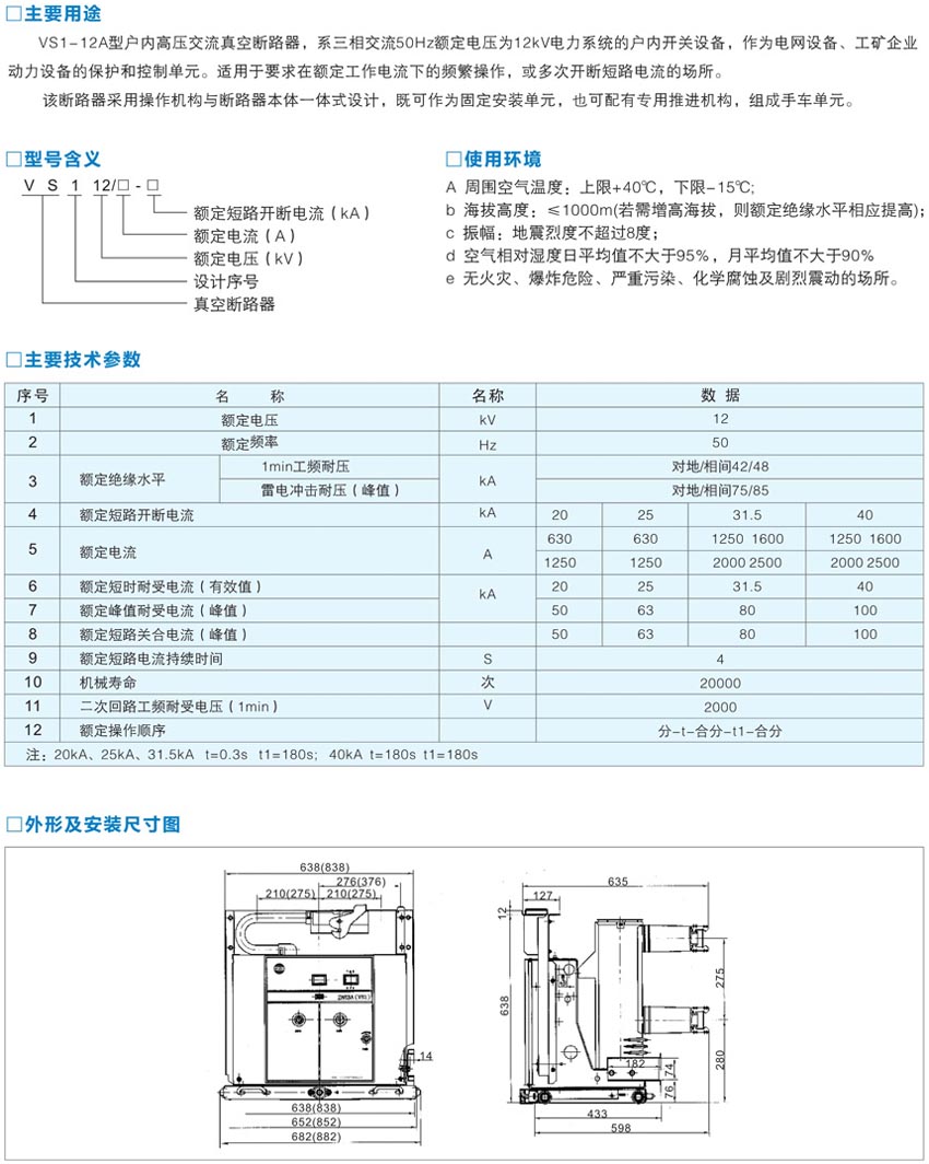 VS1-12A固封式戶內(nèi)高壓真空斷路器