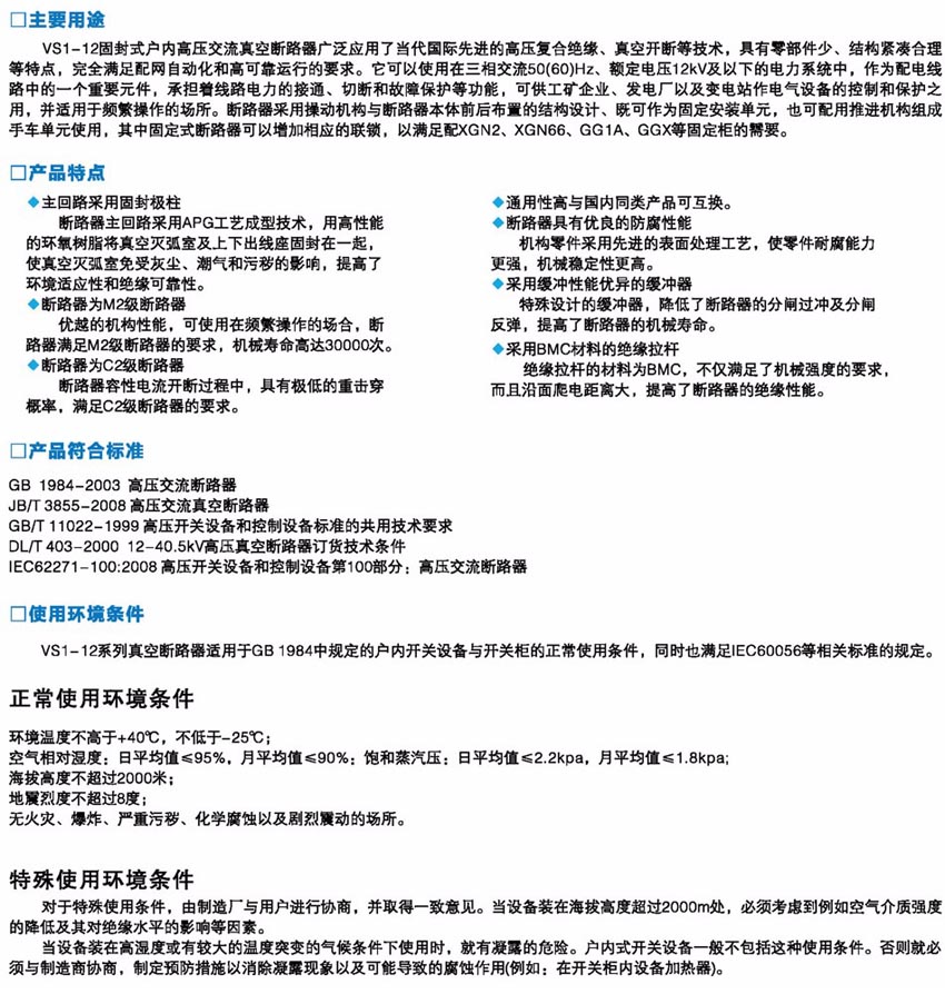 VS1-12B固封式戶內高壓真空斷路器-高壓開關原件