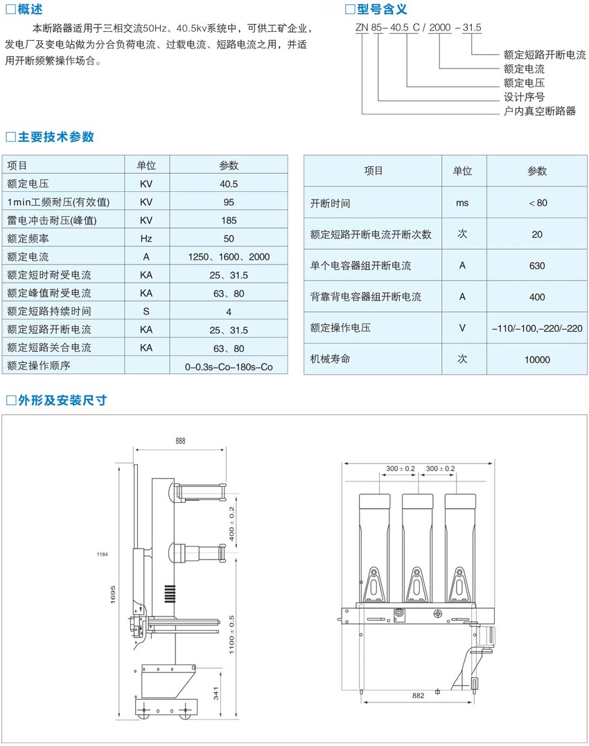ZN85-40.5C/2000-31.5戶內(nèi)高壓真空斷路器