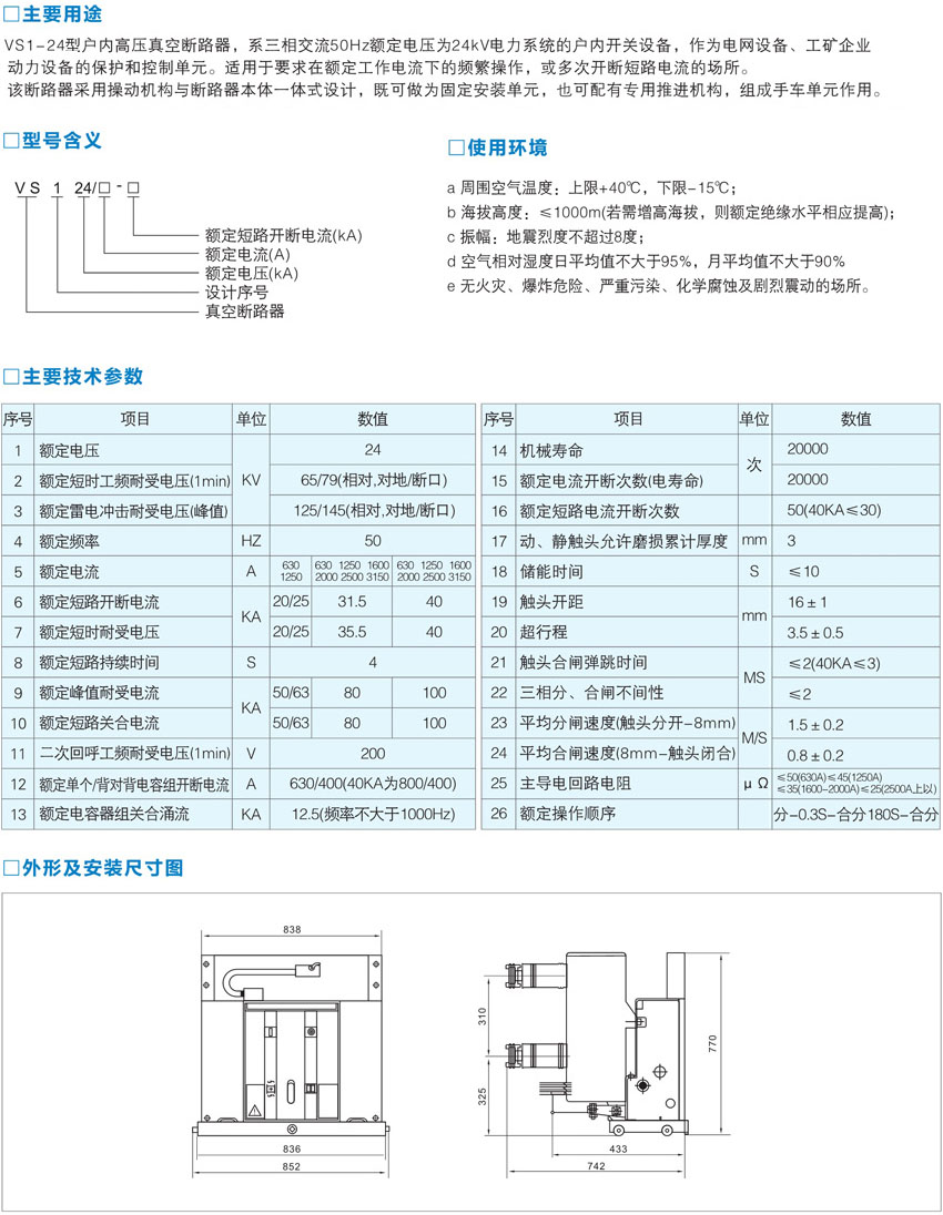 VS1-12固封式側裝式戶內高壓真空斷路器