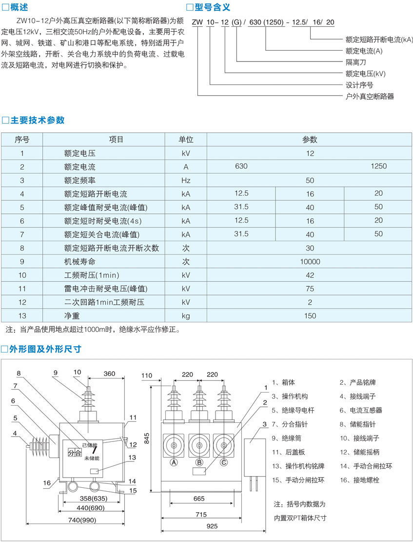 ZW10-12戶外高壓真空斷路器-高壓開關原件