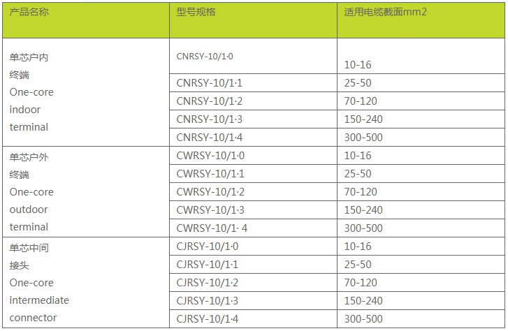 10KV單芯交聯電纜熱縮附件-冷縮熱縮電纜附件