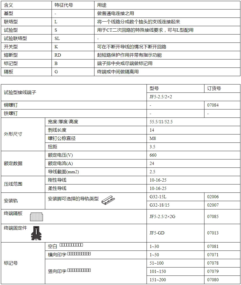 本系列接線端子用于交流50HZ(或60Hz),額定電壓660V或直流440V的電路中作圓銅導線截面0.75~25平方毫米的連接之用,其性能符合GB/T14048.1-2000《低壓開關設備和控制設備總則》,符合JB/T9659.1-1999《低壓成套開關設備和控制設備用接線端子排》,同時還符合IEC947-7-1:2000標準要求。產品絕緣材料采用PC,其阻燃性達到UL94-VO級,CTI≥600V,可在+120℃~-40℃環境溫度范圍內可靠工作。