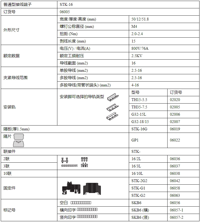 STK-16 框式螺釘壓接端子排-導軌式接線端子